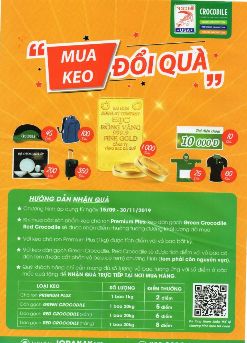 Từ ngày 15/9/2019 đến 30/11/2019 thu thập tem đổi quà hấp dẫn của Keo cá sấu.
